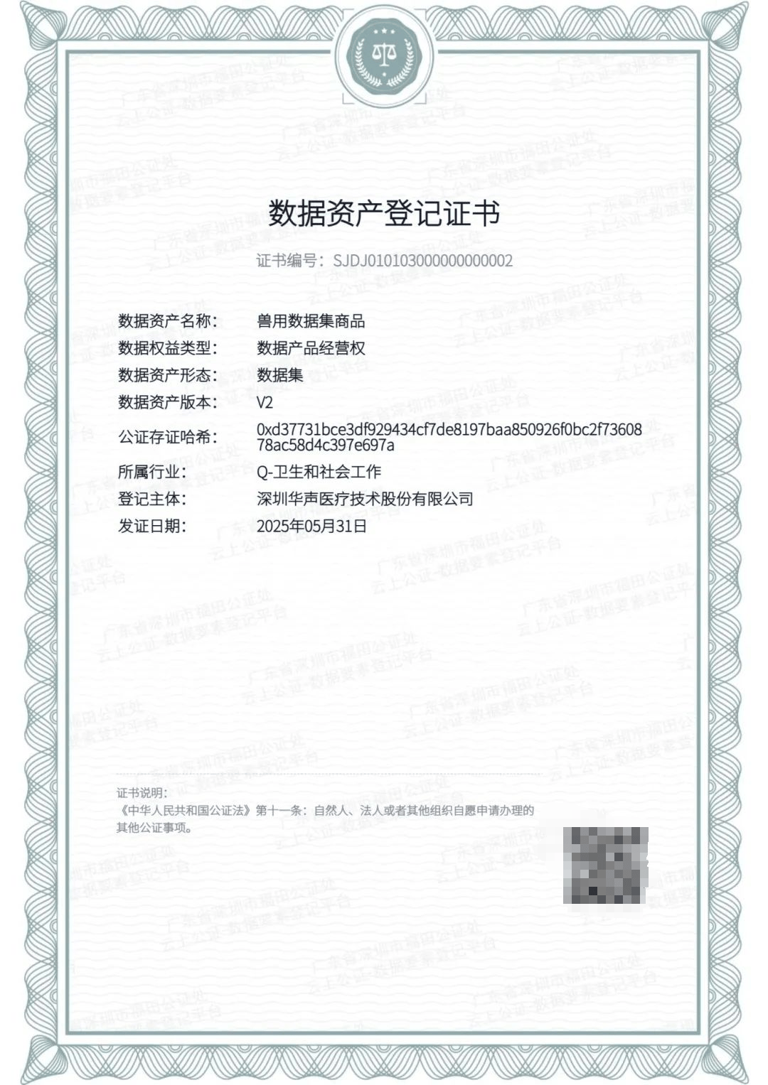 在数据资产确权与价值认定成为行业核心关切之际,华声医疗旗下“兽用数据集”与“麻醉超声诊断数据集”率先获得深圳司法公证处权威司法认证及数据资产登记证书。这不仅是医疗器械行业数据集司法认证零的突破,更是华声医疗在数据确权、合规流通与价值保障领域迈出的具有里程碑意义的一步。司法认证如同为数据资产赋予了不可篡改的价值身份证,极大提升了其在市场交易中的核心公信力与法律保障。华声医疗此举,实质上为整个医疗健康行业确立了数据资产价值评估、安全流转与法律确权的“黄金标准”,解决了数据要素市场化配置的关键瓶颈,其行业价值远胜于单一商业成功。