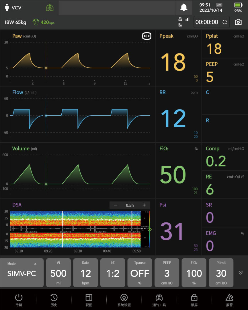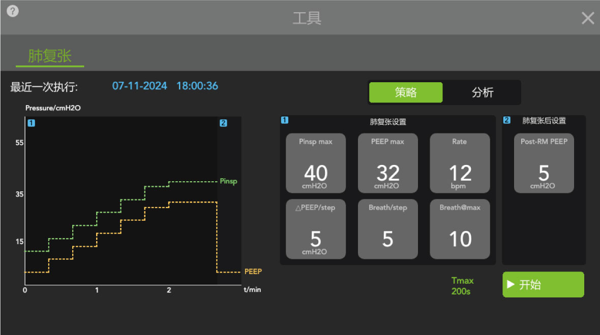pre-set parameters enable automatic recruitment maneuvers for fast, safe, and efficient lung expansion